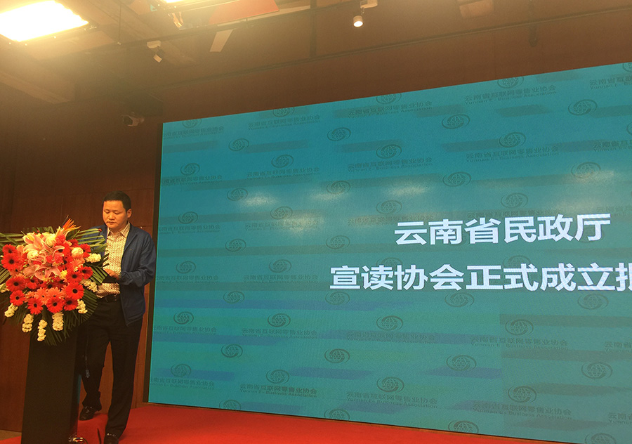 省民政廳民管二處楊武成處長宣讀《云南省民政廳關(guān)于批準(zhǔn)成立云南省互聯(lián)網(wǎng)零售業(yè)協(xié)會的批復(fù)》