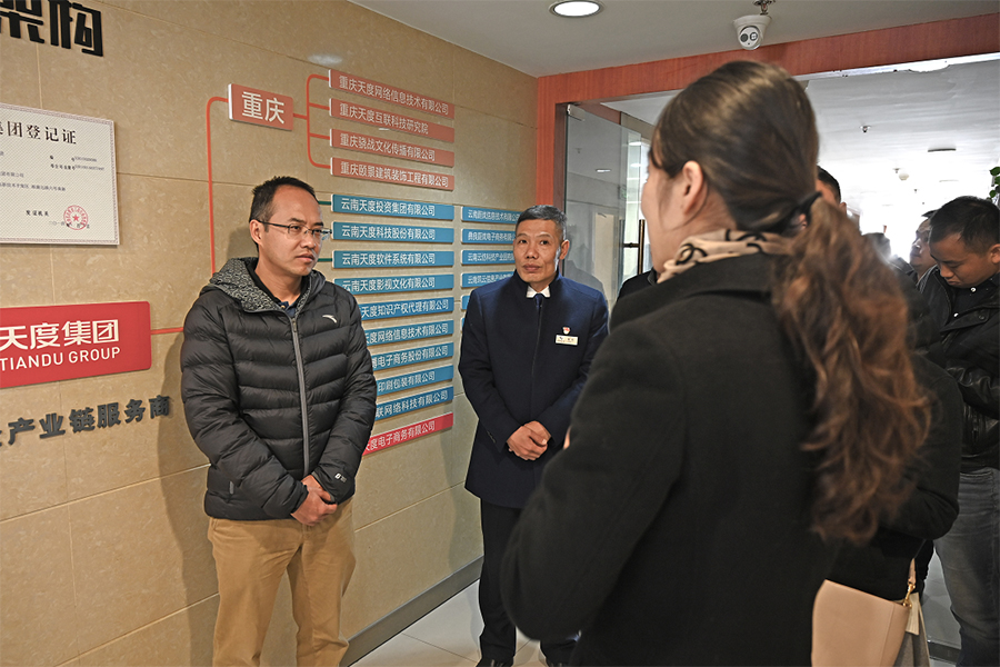 12月17日上午,西山區委副書(shū)記陳凈等領(lǐng)導一行來(lái)到天度集團調研,區委組織部、區委辦、區科學(xué)技術(shù)和工業(yè)信息化局、永昌街道黨工委、云紡科技園等領(lǐng)導陪同調研。