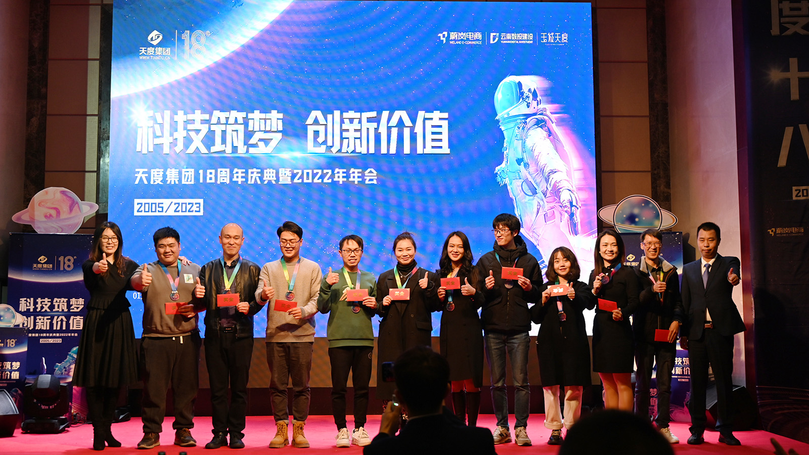 2023年1月8日,科技筑夢(mèng)·創(chuàng )新價(jià)值—天度集團18周年慶典暨2022年年會(huì )在西南賓館圓滿(mǎn)落幕,集團及各公司同仁齊聚一堂,共慶天度集團發(fā)展成果,共享年會(huì )歡樂(lè )時(shí)光!