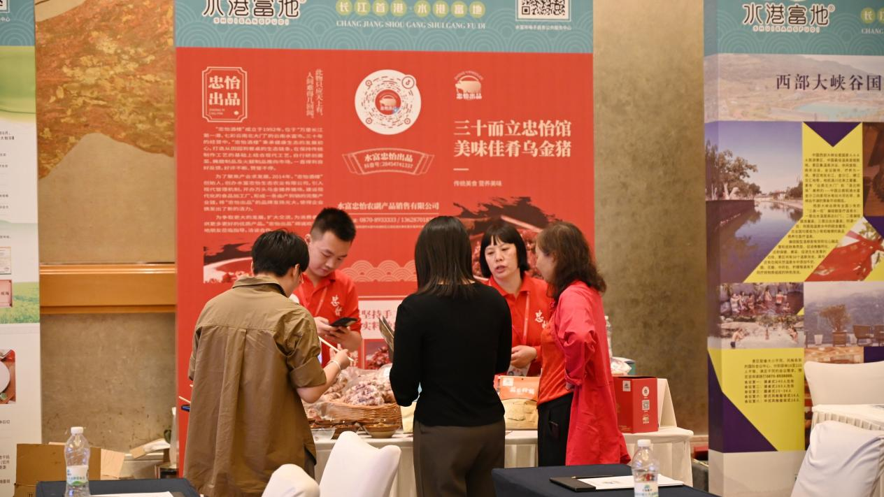 發(fā)布會(huì )接近尾聲時(shí),主持引領(lǐng)嘉賓們前往水富特色產(chǎn)品鑒區,現場(chǎng)品嘗“水港富地”品牌精細挑選出的各類(lèi)名優(yōu)特產(chǎn)品,并可以去在線(xiàn)直播間參觀(guān)、指導、交流及與粉絲互動(dòng)。