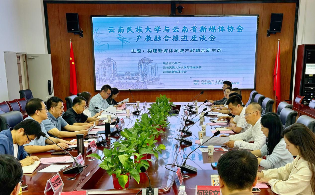 文學(xué)與傳媒學(xué)院副院長(cháng)陳順堯、許麗華,學(xué)校教務(wù)處教學(xué)研究科科長(cháng)張勝婷,學(xué)院新聞系主任張?chǎng)┑扰c會(huì )人員圍繞如何進(jìn)一步深化校企合作和產(chǎn)教融合,完善人才培養模式,新媒體賦能云南經(jīng)濟社會(huì )發(fā)展、推動(dòng)大學(xué)生實(shí)踐實(shí)訓與就業(yè)創(chuàng )業(yè)等內容踴躍發(fā)言。大家一致認為,云南省新媒體協(xié)會(huì )與云南民族大學(xué)聯(lián)合相關(guān)高校、企業(yè)啟動(dòng)“產(chǎn)教融合共同體”創(chuàng )建工作,并同步推動(dòng)成立“高校專(zhuān)委會(huì )”,建設開(kāi)放型公共實(shí)踐實(shí)訓基地,不僅滿(mǎn)足社會(huì )對創(chuàng )新型高質(zhì)量人才的需求,對推進(jìn)高校教學(xué)改革、提升技術(shù)技能人才培養質(zhì)量,促進(jìn)全省新媒體領(lǐng)域的教育與產(chǎn)業(yè)協(xié)同發(fā)展也具有重要意義。