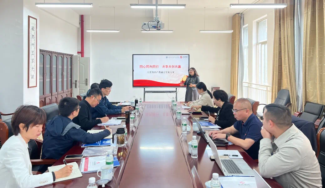 座談會上,與會人員共同觀看了云南天度投資集團宣傳片,胡婷婷就“產(chǎn)業(yè)學院建設(shè)定位”“產(chǎn)業(yè)學院建設(shè)內(nèi)容”“預(yù)期成效”四個方面對產(chǎn)教融合實施方案進行了詳細介紹,以“共建、共管、共享”的合作理念,聚焦云南及臨滄產(chǎn)業(yè)需求,在專業(yè)建設(shè)、課程開發(fā)、師資共建、就業(yè)服務(wù)等方面深化合作。隨后,與會人員就產(chǎn)業(yè)學院建設(shè)等相關(guān)情況進行了深入交流研討,達成了一定共識。