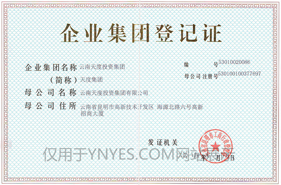 云南天度集團(tuán)完成首輪整合并獲《企業(yè)集團(tuán)登記證》