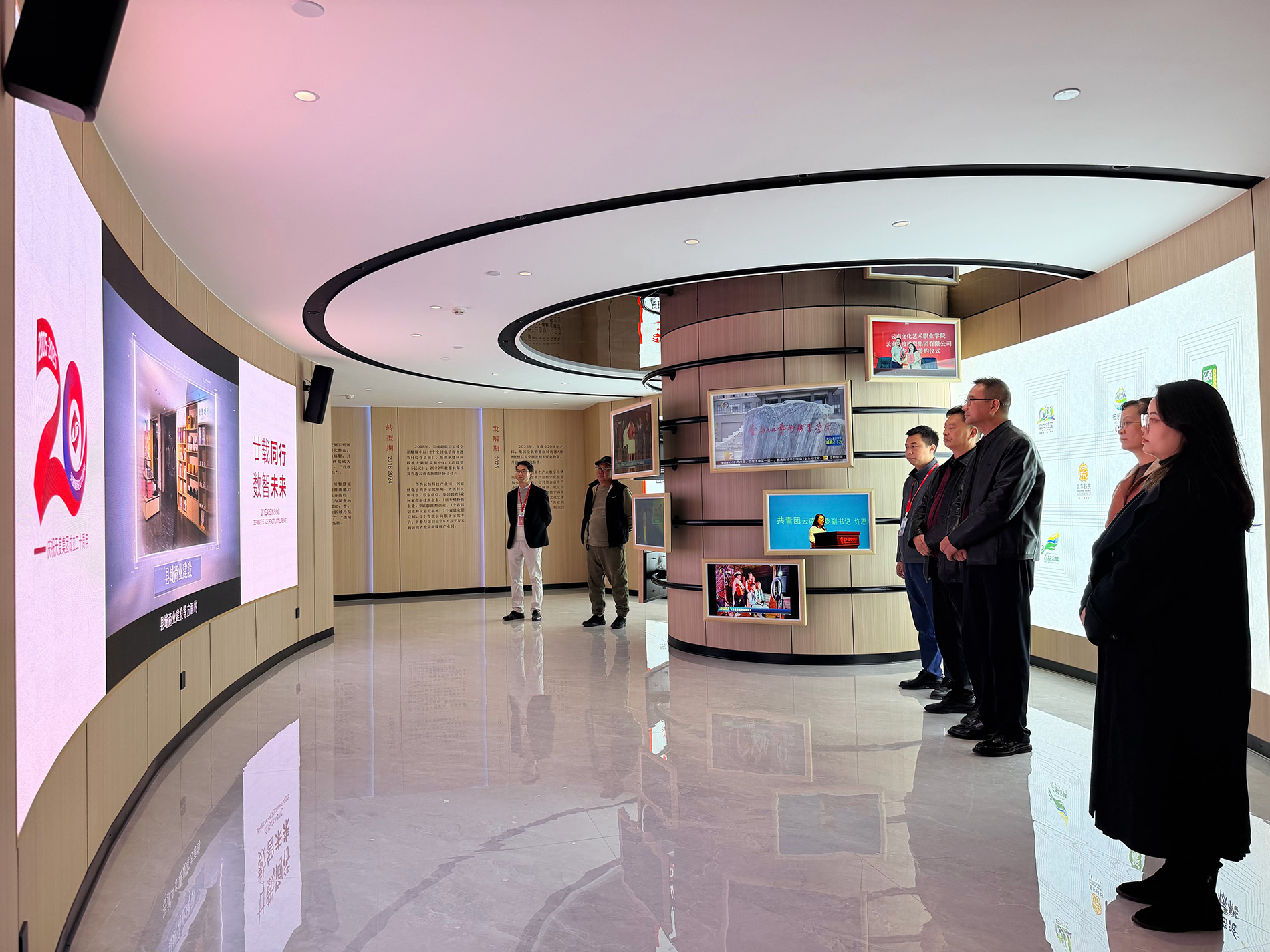 在數(shù)字化展廳,天度集團董事長鄭桂文向儂援校長一行系統(tǒng)介紹了集團二十年發(fā)展歷程、核心業(yè)務架構(gòu)與未來戰(zhàn)略愿景。鄭桂文董事長回顧了天度從創(chuàng)業(yè)起步到如今成為云南省產(chǎn)業(yè)數(shù)字化領域重要參與者的成長路徑,重點闡述了集團在“聚焦數(shù)字經(jīng)濟、服務鄉(xiāng)村振興”戰(zhàn)略指引下,在人工智能技術(shù)應用、產(chǎn)業(yè)互聯(lián)網(wǎng)平臺建設、電子商務與數(shù)字化供應鏈、產(chǎn)教融合共建產(chǎn)業(yè)學院等板塊的探索與成果。