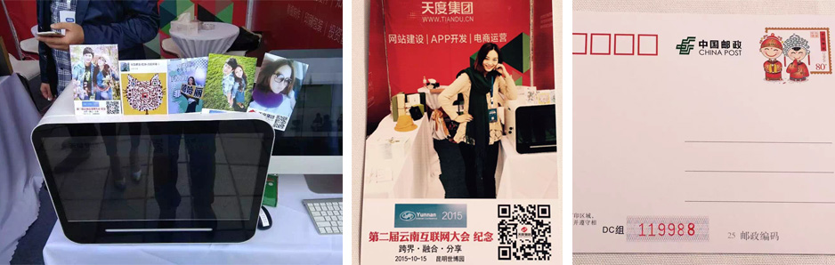 天度集團作為云南本土很大的互聯(lián)網(wǎng)服務(wù)企業(yè),在本次參展中,向業(yè)界展示了“互聯(lián)網(wǎng)+”系列服務(wù)及產(chǎn)品,并聯(lián)合云南省郵政局展示了“互聯(lián)網(wǎng)+郵政”的系列應(yīng)用。在本次大會中,天度集團參展展位為大會嘉賓免費提供了“第二屆云南省互聯(lián)網(wǎng)大會紀(jì)念”個性化明信片打印,并取得廣泛關(guān)注和好評。